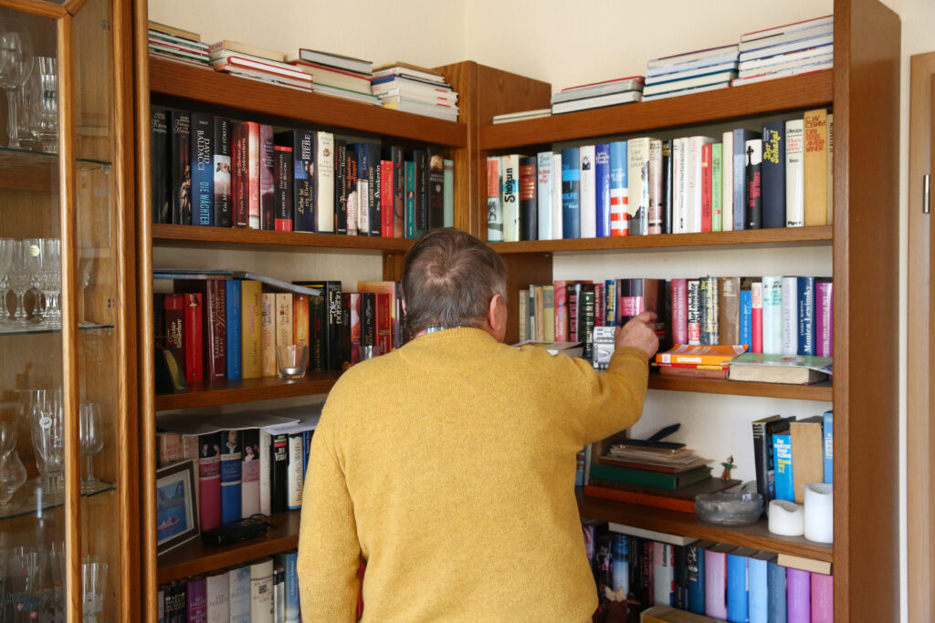 In der Ecke tickt eine Standuhr, als der gemütlich wirkende Handwerker von seinem Leben erzählt. Im Eichenregal stehen Bücher, auf dem Holztisch Adventskerzen. An der Wand hängt zwischen Familienfotos eine Schützenscheibe. „Dort, wo wir früher lebten, war ich mehrmals Schützenkönig“, sagt er.