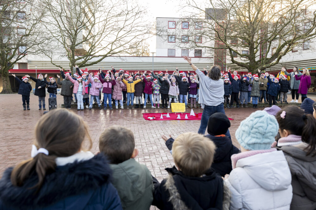 Was für eine weihnachtliche Gesangseinlage: Auf dem Vahrenheider Markt sind gleich 75 talentierte Kinder aufgetreten. Die Schüler und Schülerinnen der Wichtel-, Hunde- und Dinosaurierklasse der Fridtjof-Nansen-Schule haben ihre Lieder für die HAZ-Weihnachtshilfe angestimmt. Mit dabei hatten sie selbst gebastelte Sterne und gefaltete Weihnachtsbäume, die sie zum Verkauf anboten. Für ihren Auftritt baten die Grundschüler um Spenden. Insgesamt kamen 293 Euro zusammen – nicht nur für Lehrerin Angela Buschmeier ist das ein voller Erfolg. „Wir sammeln schon seit etwa 13 Jahren und freuen uns, etwas Gutes zu tun“, berichtet Buschmeier. „Außerdem macht Singen Spaß, und die Kinder geben sich Mühe, denn sie wissen, dass sie bei der Spendensammlung etwas bewirken können.“