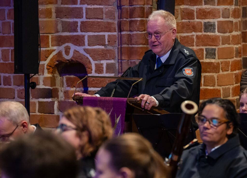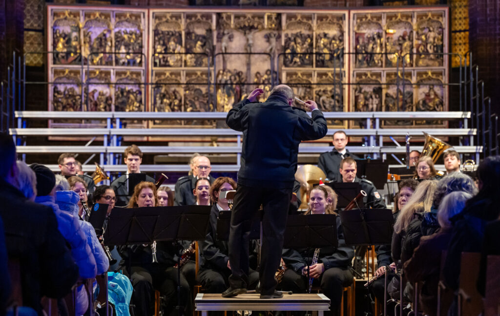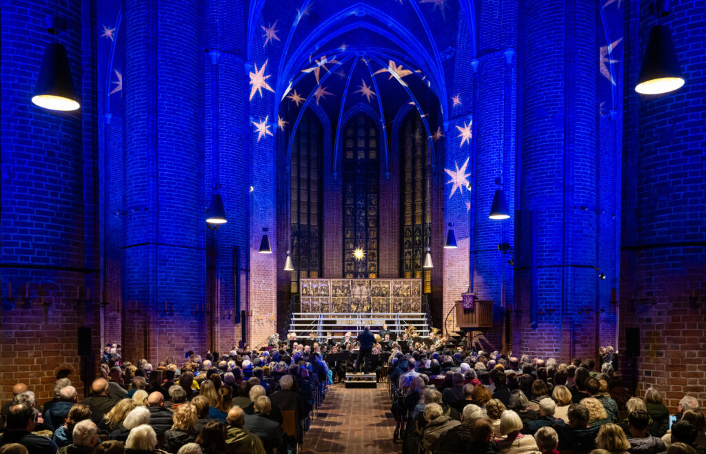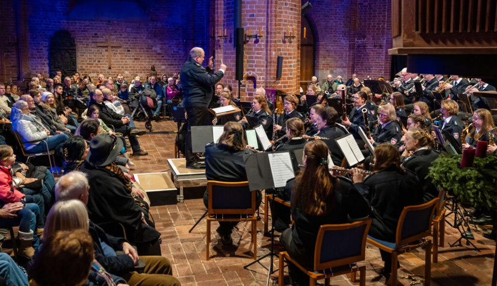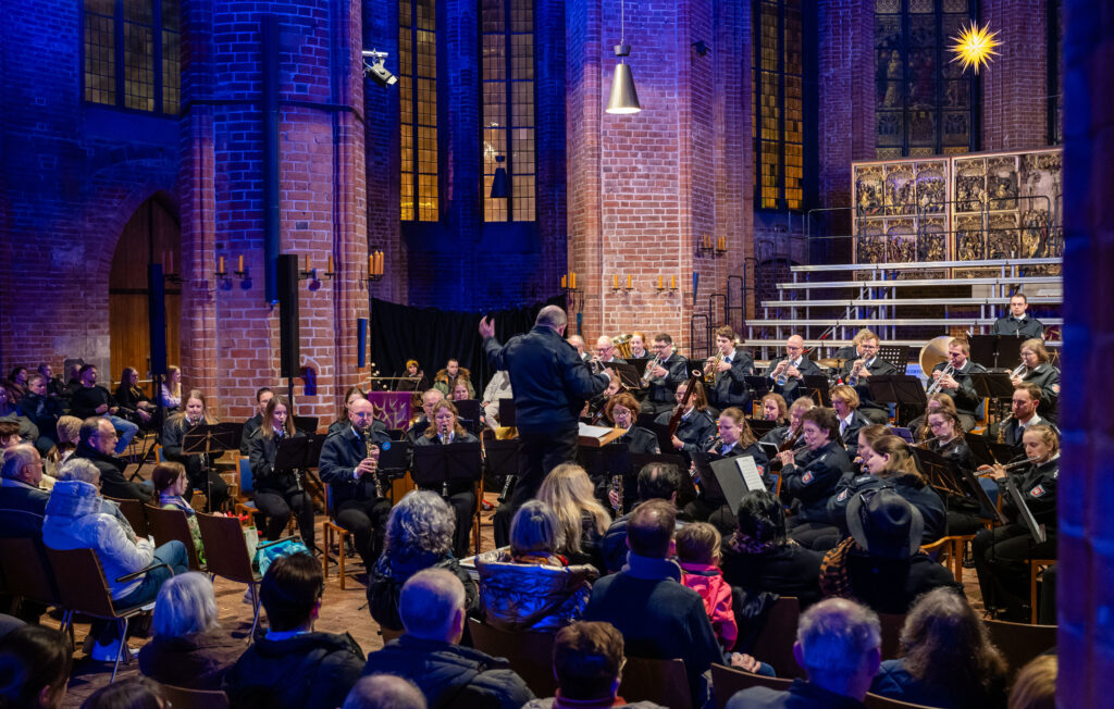 Die Geschichte von Kevin McCallister ist ein Weihnachtsklassiker. Zum Film „Kevin – Allein zu Haus“ gehört die passende Filmmusik von Komponist John Williams. Als das sinfonische Blasorchester der Feuerwehr Opus 112 nun mit einer der Kompositionen in der Marktkirche beginnt, sind die Musiker und Musikerinnen aber keineswegs allein. Bis zum letzten Platz ist die Kirche belegt. Und die Menschen sind begeistert. Orchesterleiter Hugo Loosveld legt nach: „Somewhere Over the Rainbow“, „Driving Home for Christmas“ und „Last Chrismas“ sind zu hören. Dazu gibt es Weihnachtsgeschichten und immer wieder Applaus für das Orchester. Seit 22 Jahren lädt das Team zum Adventskonzert.