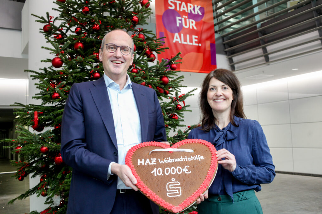 Für die Sparkasse Hannover gehört lokales Engagement zur Unternehmenskultur. So hat das Team zum Beispiel mehr als 200.000 Euro im Bereich Sportförderung über den Sportfonds vergeben. Und auch beim Rollstuhlbasketball-Team von Hannover United oder bei der „Goldenen Fanfare“ beim Schützenfest ist die Sparkasse als Sponsor aktiv. Zusammen mit ihren Stiftungen fördert sie jährlich regionale Projekte mit mehr als drei Millionen Euro. Kurz vor Weihnachten engagierte sich die Sparkasse beim Stadionsingen. Nun lud der Vorstandsvorsitzende Volker Alt HAZ-Chefredakteurin Dany Schrader in die Zentrale ein – und übergab symbolisch eine 10.000-Euro-Spende an die HAZ-Weihnachtshilfe. „Als Starkmacherin der Region ist es uns ein besonderes Anliegen, diese Tradition zu unterstützen und Zusammenhalt sowie Solidarität in der Region Hannover erlebbar zu machen“, sagte Alt. Dany Schrader dankte für die Spende und die treue Zusammenarbeit. Denn seit Jahren übernimmt die Sparkasse auch die Kontoführung der Spendensammlung.